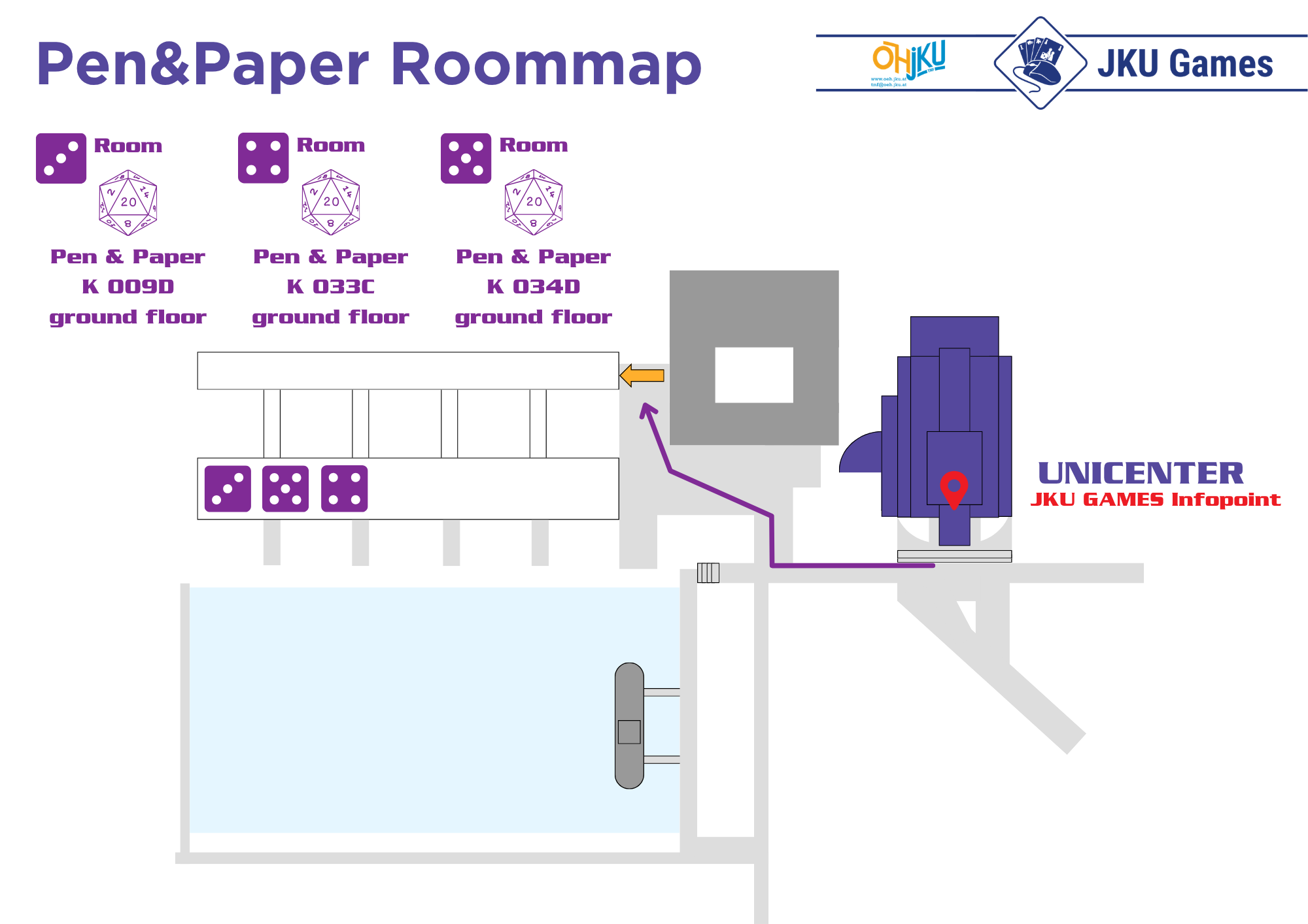 This semester our Pen & Paper games will take place in rooms on the second floor of the Unicenter as well as the ground floor of the Kepler Building: